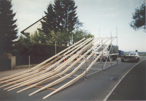 Die Balken, die den Fahrboden tragen.